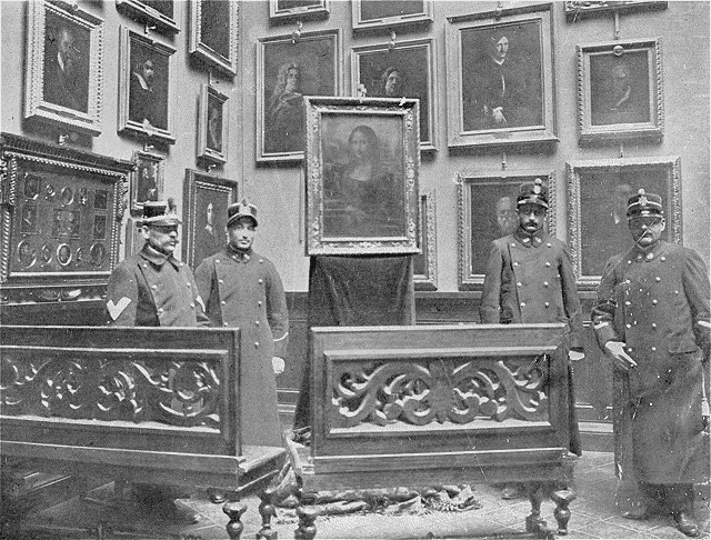 en 1911 sur le cadre de la Joconde.
