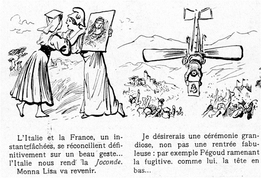 On ne saurait exprimer la joie que produisit, après quelques incrédulités, aussi bien en Italie qu'en France, la nouvelle de l'heureux événement. La Joconde était retrouvée! Il suffit que le ministre de l'Instruction publique du roi Victor-Emmanuel, M. Credaro, l'annonçât à la Chambre italienne pour apaiser soudain une discussion parlementaire fort orageuse.