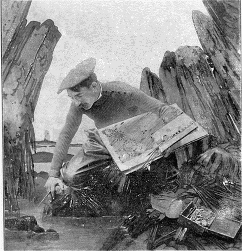 Le peintre Méheut au travail.