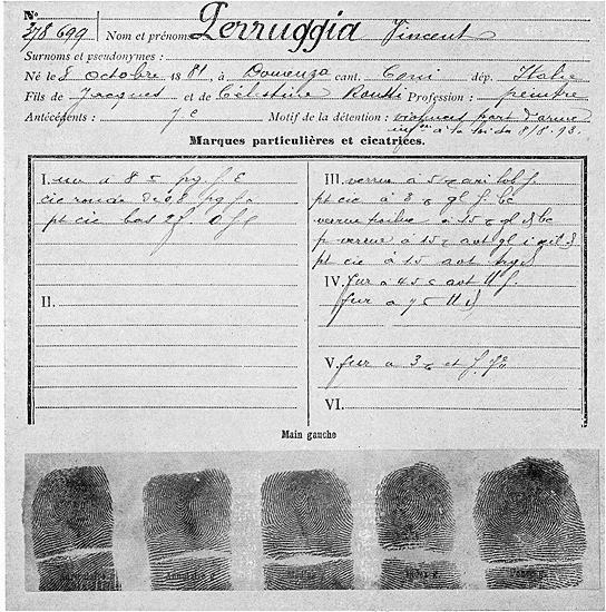 Voir aux pages 512-513 LE VOLEUR DE LA «JOCONDE» ET L'ANTHROPOMÉTRIE.