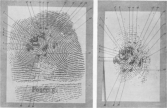 Les chiffres correspondants sur l'une et l'autre empreinte désignent