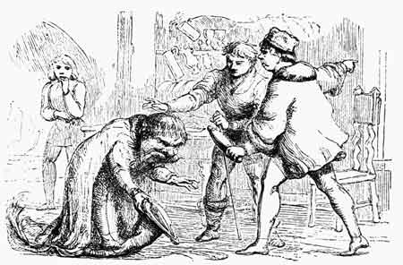 "Want?" said the old gentleman, petulantly. "I want fire, and shelter; and there's your great fire there blazing, cracking, and dancing on the walls, with nobody to feel it. Let me in, I say; I only want to warm myself."
