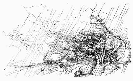 And, to this day, the inhabitants of the valley point out the place where the three drops of holy dew were cast into the stream, and trace the course of the Golden River under the ground, until it emerges in the Treasure Valley. And at the top of the cataract of the Golden River, are still to be seen TWO BLACK STONES, round which the waters howl mournfully every day at sunset; and these stones are still called by the people of the valley