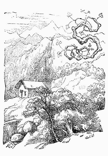 Then he went on for another hour, and the thirst increased on him so that he thought he should be forced to drink. But, as he raised the flask, he saw a little child lying panting by the road-side, and it cried out piteously for water. Then Gluck struggled with himself, and determined to bear the thirst a little longer; and he put the bottle to the child's lips, and it drank it all but a few drops. Then it smiled on him, and got up, and ran down the hill; and Gluck looked after it, till it became as small as a little star, and then turned and began climbing again. And then there were all kinds of sweet flowers growing on the rocks, bright green moss, with pale pink starry flowers, and soft belled gentians, more blue than the sky at its deepest, and pure white transparent lilies. And crimson and purple butterflies darted hither and thither, and the sky sent down such pure light, that Gluck had never felt so happy in his life.