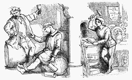 Hans, on hearing this, contrived to escape, and hid himself; but Schwartz was taken before the magistrate, fined for breaking the peace, and, having drunk out his last penny the evening before, was thrown into prison till he should pay.