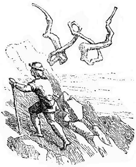He had been compelled to abandon his basket of food, which became a perilous incumbrance on the glacier, and had now no means of refreshing himself but by breaking off and eating some of the pieces of ice. This, however, relieved his thirst; an hour's repose recruited his hardy frame, and with the indomitable spirit of avarice, he resumed his laborious journey.