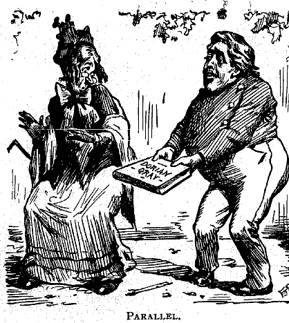 No sooner said than done! The picture does change: the original doesn't. Here's a situation for you! Théophile Gautier could have made it romantic, entrancing, beautiful. Mr. Stevenson could have made it convincing, humorous, pathetic. Mr. Anstey could have made it screamingly funny. It has been reserved for Mr. Oscar Wilde to make it dull and nasty. The promising youth plunges into every kind of mean depravity, and ends in being "cut" by fast women and vicious men. He finishes with murder: the New Voluptuousness always leads up to blood-shedding—that is part of the cant. The gore and gashes wherein Mr. Rider Haggard takes a chaste delight are the natural diet for a cultivated palate which is tired of mere licentiousness. And every wickedness of filthiness committed by Dorian Gray is faithfully registered upon his face in the picture; but his living features are undisturbed and unmarred by his inward vileness. This is the story which Mr. Oscar Wilde has tried to tell; a very lame story it is, and very lamely it is told.