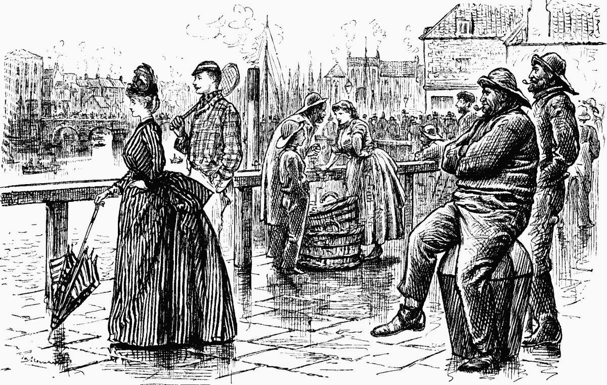 Londoners who like but are weary of the attractions of Eastend-on-Mud, and want a change, can scarcely do better than spend twenty-four hours in that rising watering-place Teapot Bay. I say advisedly "rising," because the operation has been going on for more than forty years. In these very pages a description of the "juvenile town," appeared nearly half a century ago. Then it was said that the place was "so infantine that many of the houses were not out of their scaffold-poles, whilst others had not yet cut their windows," and the place has been growing ever since—but very gradually. The "ground plan of the High Street" of those days would still be useful as a guide, although it is only fair to say that several of the fields then occupied by cabbages are now to some extent covered with empty villas labelled "To Let." In the past the High Street was intersected by roads described as "a street, half houses, half potatoes," "a street apparently doing a good stroke of business," "a street, but no houses," "a street indigent, but houseless," "a street which appears to have been nipped in the kitchens," "a street thickly populated with three inhabitants," and last but not least, "a street in such a flourishing condition that it has started a boarding-house and seminary." The present condition of Teapot Bay is much the same—the roads running between two lines of cellars (contributions to houses that have yet to be built) are numerous and testify to good intentions never fulfilled. There is the same meaningless tower with a small illuminated clock at the top of it, and if the pier is not quite so long as it was thirty or forty years ago, it still seems to be occupying the same site.