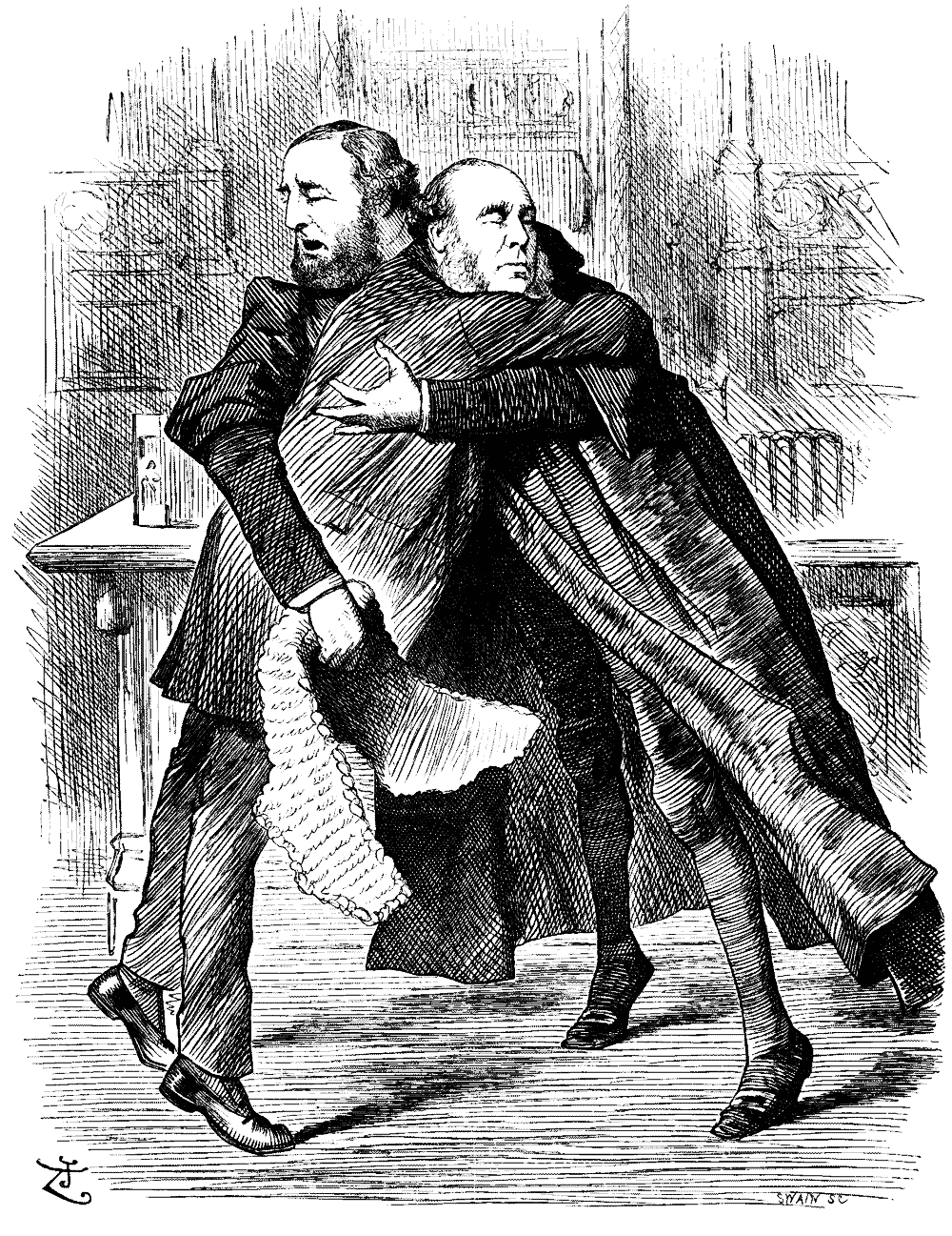 Nearly everyone else off, pair or no pair. Irish Members, with exception of Parnell, have nowhere else to go, so make up their minds not only to stop themselves, but to be the cause of stopping in others. Parnell long ago gone off shooting. The O'Gorman Mahon shook his hand all the way across Palace Yard, and assured him he might go without a sense of uneasiness.