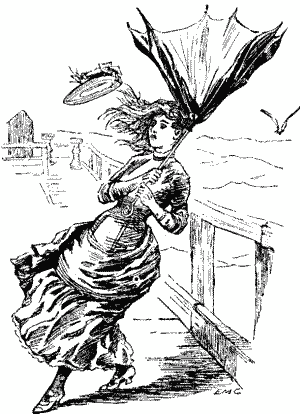 The means of getting to Teapot Bay is by railway. Although no doubt numbered amongst the cheap and picturesque routes for tourists, the place is apparently considered by the authorities as more or less of a joke. Margate, Ramsgate, Westgate and Broadstairs, are taken au sérieux, and have trains which keep their time; but Teapot Bay, seemingly, is looked upon as a legitimate excuse for laughter. If two trains are fixed to start at 12, and 12.30, the twelve o'clock train will leave at 12.30, and the 12.30 at 1. The authorities endeavour to have a train in hand at the end of the day, and I fancy are generally successful in carrying out their intentions. But between London and Teapot Bay there are many slippery carriages, which stop at various Junctions, and refuse to go any further in the required direction. When this happens, the weary traveller has to descend, cross a platform, and try another line. If he is a man of determination, and is not easily disheartened, nine times out of ten he ultimately reaches Teapot Bay, where his arrival causes more astonishment than gratification.