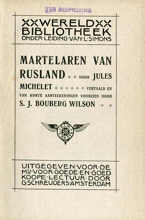 No. 3. Martelaren van Rusland, door Jules Michelet, vertaling van S. J. Bouberg Wilson.