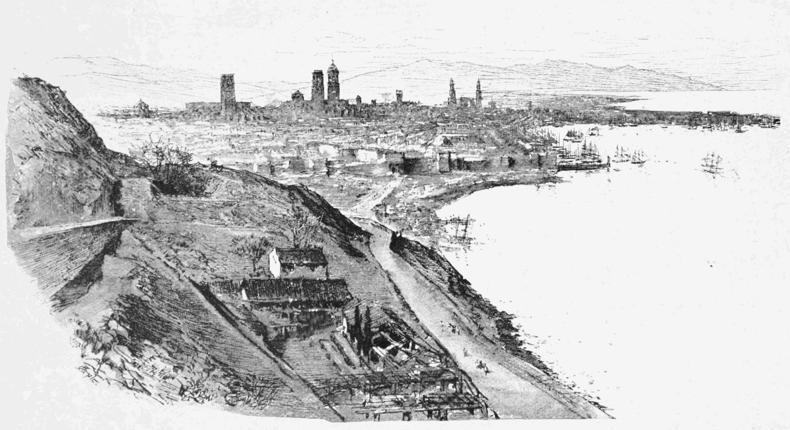 Some of the streets are very picturesque, with long narrowing vistas of houses and balconies, casements and quaint outlines, all in the strong light and shadow of sunshine, with perhaps a church tower and spire rising above all at the end, sharply outlined against the intensely brilliant blue of the sky.