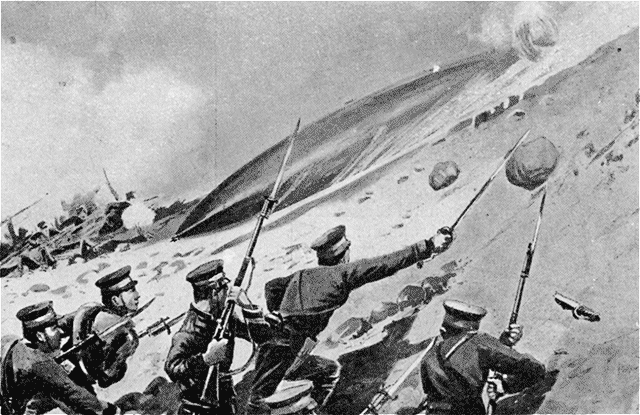 L'esprit ingénieux de Kondratenko ne cessa, pendant ces longs mois de lutte, de faire des trouvailles étonnantes. La flotte ne pouvant se décider à sortir, il avait réclamé ses canons, ses torpilles, ses munitions de guerre, tout ce qui pouvait être utilisé sur terre. Il n'avait pas seulement construit tous les forts qui n'existaient que sur le papier à la date du 8 février; il les avait armés, semant leurs approches de chausse-trapes, de fougasses, où les torpilles, où les mines flottantes, devenues mines terrestres, détruisaient, en quelques secondes, les plus beaux régiments de Nogi.