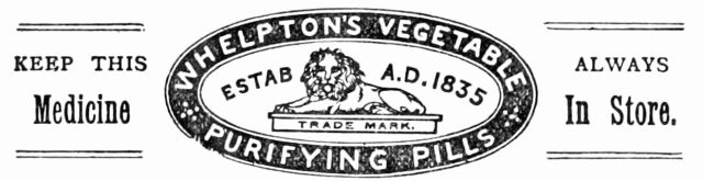 Sold in boxes, price 7½d., 1s. 1½d., and 2s. 9d., by G. Whelpton & Son, 8 Crane Court, Fleet Street, London, at all Chemists and Medicine Vendors at home and abroad. Sent free by post in the United Kingdom for 8, 14 or 33 stamps.