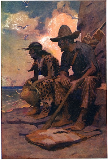 15Under the lee of the knoll lay Winthrope and Miss Leslie. Though conscious, both were draggled and bruised and beaten to exhaustion. They were together because they had come ashore together. When the boat capsized, Miss Leslie had been flung against the Englishman, and they had held fast to each other with the desperate clutch of drowning persons. Neither of them ever recalled how they gained the shelter of the hummock.