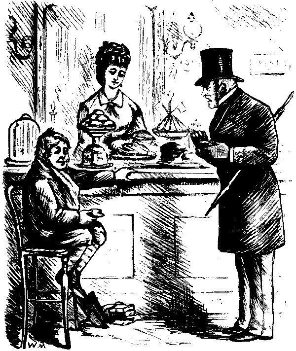 Softly. "Yes, I was b-b-orn with a s-s-s-ilver s-s-poon in my m-m-m-outh." Kitty. "Oh, Mr. Softly, is that why you stutter?"