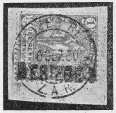 An Egyptian stamp which might have been included in the body of the present work is Fig. 398, a postage-due stamp issued in 1898. At that time the Egyptian postal regulations charged 3 milliemes for prepaid letters but double that sum (6 milliemes) for unpaid letters, from or to non-commissioned officers and men of the Egyptian Army in garrison on the frontier, as well as at Suakim and Tokar; the same tariff was applicable to soldiers taking part in the Expedition to the Sudan. In consideration of the fact that such soldiers would be most frequently in places where they would be unable to get postage stamps, the authorities decided that unpaid letters sent by them should only be liable to the single rate of 3 milliemes instead of the double rate of 6 milliemes. But as there was no postage-due stamp of 3 milliemes to use in collecting this sum, it was temporarily permitted to use a 2 millieme stamp, with half of another 2 millieme stamp divided diagonally, until the surcharged stamp (Fig. 398) 3 milliemes on 2 milliemes could be prepared and issued.