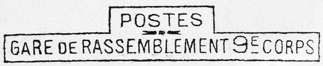 Postcards and Postmarks. The remaining illustrations, added as this work is being sent to press, supplement the philatelic records of the present war, as already outlined in the earlier chapters. Fig. 406 is the original issue of the French military postcard, on thin green card. Fig. 407 is also French, printed on a thicker Silurian card. Fig. 408 is a German field postcard (medium white) despatched by a British prisoner of war in the English Lager at Sennelager. A few additional naval postmarks are also shown (Figs. 409-413). Fig. 409 appears to be in the design of an "Iron Cross" (!) Fig. 414 is a mark used by the censor in handling registered mail, and 415 is on correspondence originating at a depot for convalescent horses. Figs. 416-420 are various types of censor marks, No. 419 being a Dutch one on a letter posted at Maastricht. At the time of going to press we have noted British military censor marks up to No. 1739. We are also able to state definitely that Fig. 85B (Chapter II.) is a field postmark of the Indian Expeditionary Force in France.