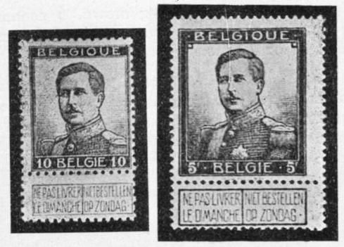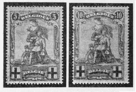 October, 1914. Current German Empire stamps, overprinted in black "Belgien," and new value in Gothic type (Fig. 209). Perforated 14. Issued in Brussels.