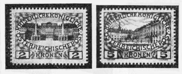 Seventeen values 1, 2, 3, 5, 6, 10, 12, 16, 20, 25, 30, 35, 50 and 60 filler, and 1, 2, and 5 korona.