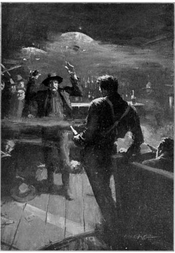 "Throw down yore guns, men, an' go out with yore hands up," he yelled, seeking to be heard above the din of conflagration. "Myself, I aims ter stay hyar!"
