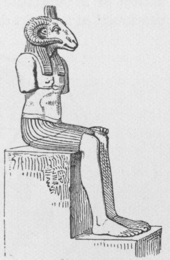 Am´mon (often called Ammon-Ra, i.e. Ammon-Sun), an ancient Egyptian deity, one of the chief gods of the country, identified by the Greeks with their supreme god Zeus, while the Romans regarded him as the representative of Jupiter; represented as a ram, as a human being with a ram's head, ornamented with the solar disc, or simply with the horns of a ram. There was a celebrated temple of Ammon in the Oasis of Siwah in the Libyan desert.