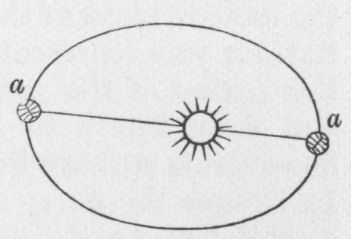 The most remote period to which we can go back in tracing the history of astronomy refers us to a time about 2500 B.C., when the Chinese are said to have recorded the simultaneous conjunction of Saturn, Jupiter, Mars, Mercury, and the moon. This remarkable phenomenon is found, by calculating backward, to have taken place 2460 B.C. Astronomy has also an undoubtedly high antiquity in India. The mean annual motion of Jupiter and Saturn was observed as early as 3062 years B.C.; tables of the sun, moon, and planets were formed, and eclipses calculated. In the time of Alexander the Great, the Chaldeans or Babylonians had carried on astronomical observations for 1900 years. They regarded comets as bodies travelling in extended orbits, and predicted their return; and there is reason to believe that they had correct ideas regarding the solar system. The priests of Egypt gave astronomy a religious character; but their knowledge of the science is testified to only by their ancient zodiacs and the position of their pyramids with relation to the cardinal points. It was among the Greeks that astronomy took a more scientific form. Thales of Miletus (born 639 B.C.) predicted a solar eclipse, and his successors held opinions which are in many respects wonderfully in accordance with modern ideas. Pythagoras (500 B.C.) and his followers formed theories of the planetary system. They taught the sphericity and revolution of the earth, but placed an imaginary 'Central Fire', not the sun itself, at the centre of the system. Great progress was made in astronomy under the Ptolemies, and we find Timochares and Aristyllus employed about 300 B.C. in making useful planetary observations. But Aristarchus of Samos (born 267 B.C.) is said, on the authority of Archimedes, to have far surpassed them, by teaching the double motion of the earth around its axis and around the sun. A hundred years later Hipparchus determined more exactly the length of the solar year, and the eccentricity of the ecliptic, discovered the precession of the equinoxes, and even undertook a catalogue of the stars. It was in the second century after Christ that Claudius Ptolemy, a famous mathematician of Pelusium in Egypt, propounded the system that bears his name, viz., that the earth was the centre of the universe, and that the sun, moon, and planets revolved around it in the following order: nearest to the earth was the sphere of the moon; then followed the spheres of Mercury, Venus, the Sun, Mars, Jupiter, and Saturn; then came the sphere of the fixed stars; these were succeeded by two crystalline spheres and an outer sphere named the primum mobile or first movable, which last was again circumscribed by the cœlum empyreum, of a cubic shape, wherein happy souls found their abode. The Arabs began to make scientific astronomical observations about the middle of the eighth century, and for 400 years they prosecuted the science with assiduity. Ibn-Yunis (A.D. 1000) made important observations of the perturbations and eccentricities of Jupiter and Saturn. In the sixteenth century Nicolaus Copernicus, born in 1473, introduced the system that bears his name, and which recognized the sun's central place in the solar system, and that all the other bodies, the earth included, revolve around it. This arrangement of the universe (see Copernicus) came at length to be generally received on account of the simplicity it substituted for the complexities and difficulties of the theory of Ptolemy. The observations and calculations of Tycho Brahe, a Danish astronomer, born in 1546, continued over many years, were of the highest value, and secured for him the title of regenerator of practical astronomy. His assistant and pupil, Kepler, born in 1571, was enabled, principally from the data provided by his master's labours, to arrive at those laws which have made his name famous: 1. That the planets move, not in circular, but in elliptical orbits, of which the sun occupies a focus. 2. That the radius vector, or imaginary straight line joining the sun and any planet, moves over equal [290]spaces in equal times. 3. That the squares of the times of the revolutions of the planets are as the cubes of their mean distances from the sun. Galileo, who died in 1642, advanced the science by his observations and by the new revelations he made through his telescopes, which established the truth of the Copernican theory. Newton, born in 1642, carried physical astronomy suddenly to comparative perfection. Accepting Kepler's laws as a statement of the facts of planetary motion, he deduced from them his theory of gravitation. The science was enriched towards the close of the eighteenth century by the discovery by Herschel of the planet Uranus and its satellites, the resolution of the Milky Way into myriads of stars, and the investigation of nebulæ and of double and triple stars. The splendid analytical researches of Lalande, Lagrange, Delambre, and Laplace mark the same period. The nineteenth century opened with the discovery of the first four minor planets; and the existence of another planet (Neptune), more distant from the sun than Uranus, was, in 1845, independently predicted by Leverrier and Adams. Of late years the sun has attracted a number of observers, the spectroscope and photography having been especially fruitful in this field of investigation. By various methods the sun's mean distance has been ascertained within very small limits of error, and found to be nearly 93,000,000 miles. Many additions have been made to the known secondary planets or satellites, including some with retrograde motions. A vast number of asteroids has been discovered, and the width of the zone occupied by them found to be much more extensive. Much success has been achieved in ascertaining the parallax of fixed stars.