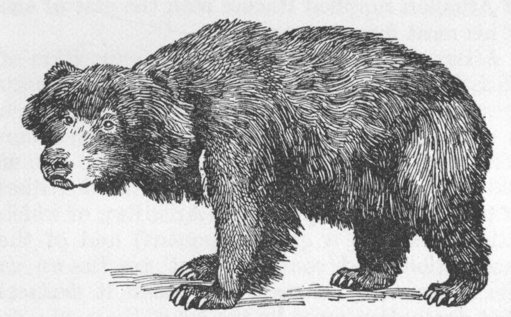 As´wail, the native name for the sloth-bear (Ursus labiātus) of the mountains of India, an uncouth, unwieldy animal, with very long black hair, inoffensive when not attacked. Its usual diet consists of roots, bees'-nests, grubs, snails, ants, &c. Its flesh is in much favour as an article of food. When captured young it is easily tamed.