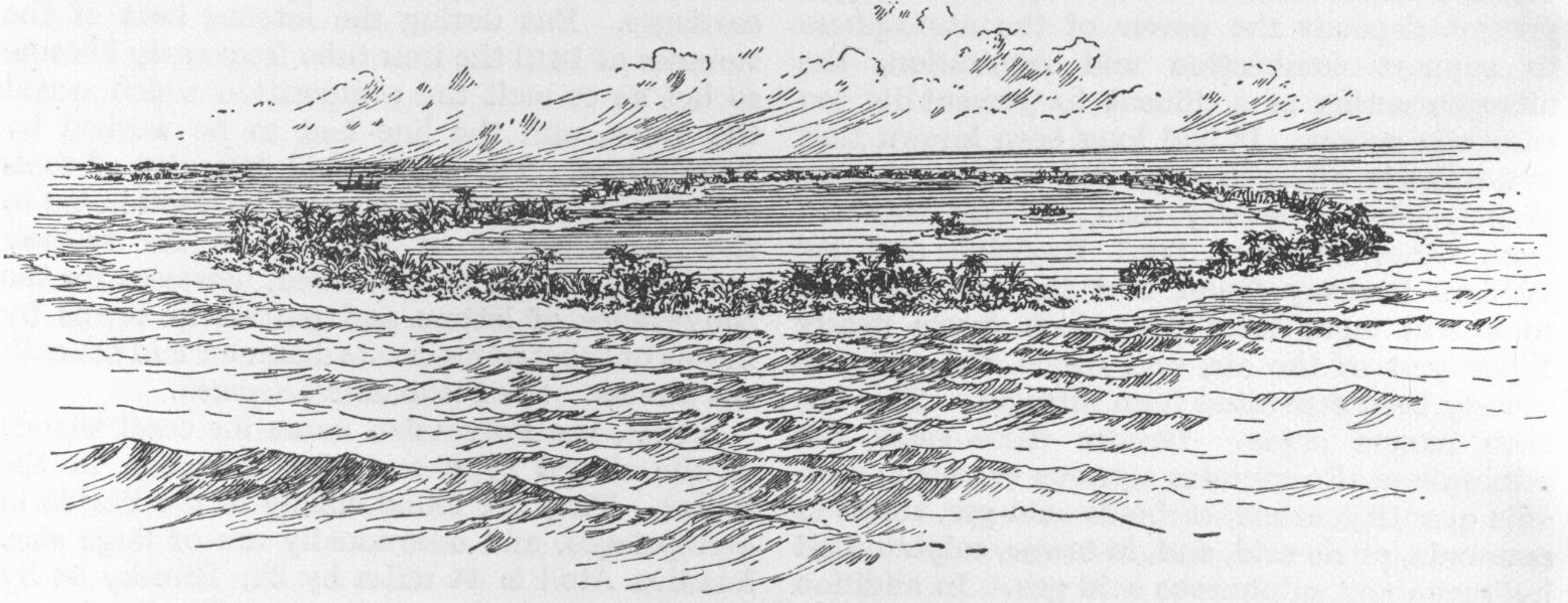 Atoll´, the Polynesian name for coral islands of the ringed type enclosing a lagoon in the centre. They are found chiefly in the Pacific in archipelagos, and occasionally are of large size. Suadiva Atoll is 44 miles by 34; Rimsky 54 by 20. See Coral.