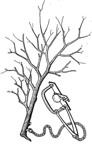 Where I set on land I without fail attached the chain to a tossing pole, thereby preventing the fur being damaged by mice or the animal being eaten by some other.