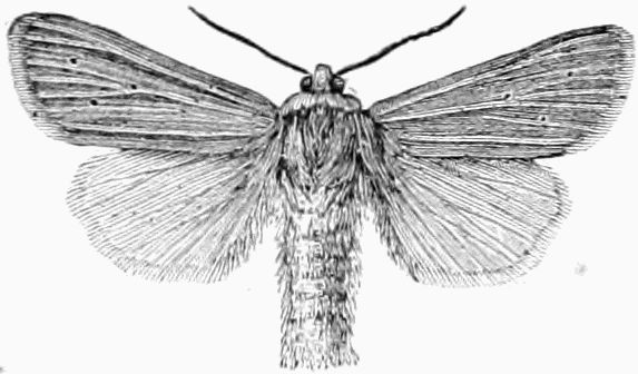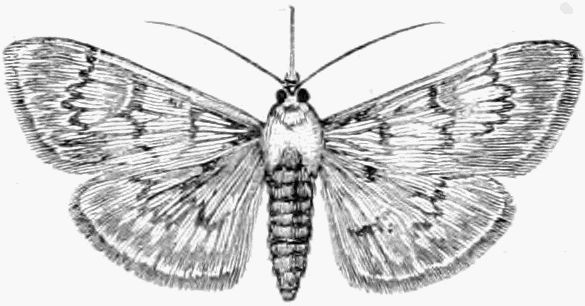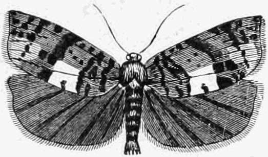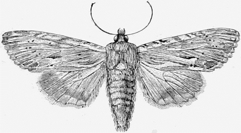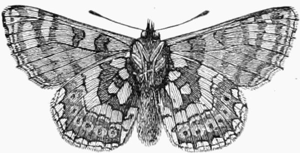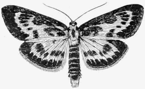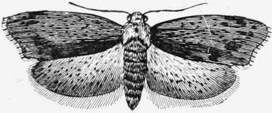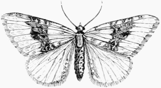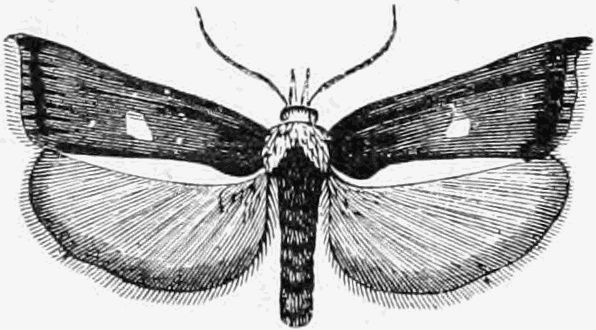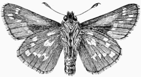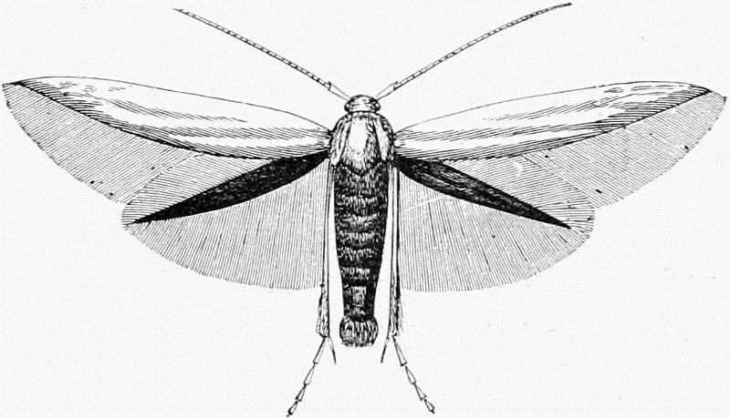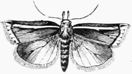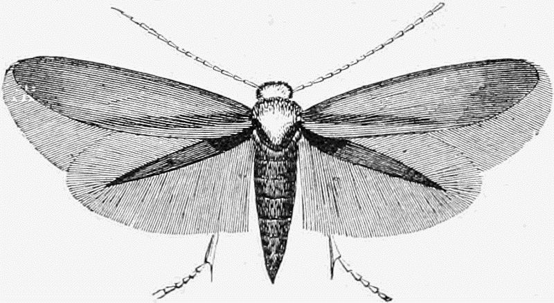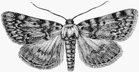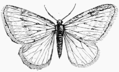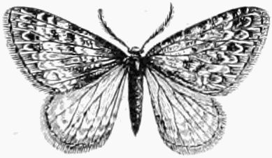 A number of the Micros are also out this month. About twenty species of the Pyralides, one or two of the Pterophori, a few Crambi, about fifty of the Tortrices, and no less than two hundred of the Tineæ. The collector will do well to search fences and[Pg 332] tree trunks for these moths, whenever he has the opportunity; and also to use the net freely in wooded country, waste places, and along hedgerows, before and at dusk.