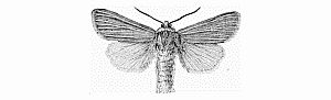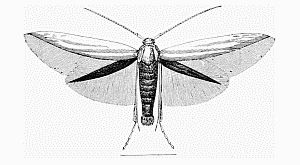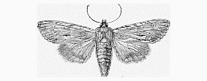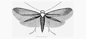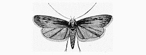 This species represents the rather extensive family Elachistidæ, the members of which have narrow and pointed wings. Many of them are adorned with beautiful metallic tints, but are generally so small that a lens is necessary to show up the splendour of their clothing. Most of the larvæ are leaf miners, and are easily reared. All that is necessary is to pluck a few twigs, the leaves of which, when held up to the light, reveal the tiny larvæ in their burrows, and place them in a vessel of water. They do not feed long, and it is probable that most of the larvæ so treated will be ready to change before the leaves have become dry. The present species has bright yellow fore wings, with pale grey cloudings at the hind margins. It is very abundant in many parts, and flies during the month of June.