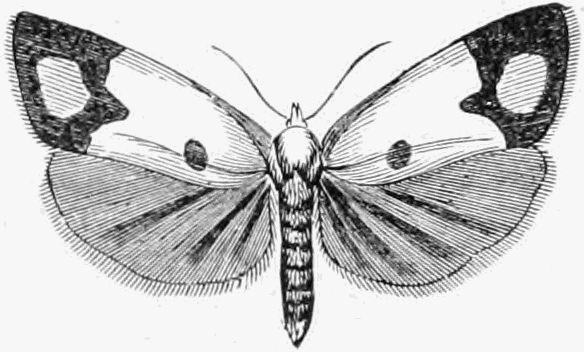 In addition to these hybernating insects, the collector may examine tree trunks and fences for the Early Moth (Rupicapraria), and late specimens of the Winter Moth (Brumata); and towards the end of the month he may expect to meet with fresh specimens of the Pale Brindled Beauty (Pedaria) and the Spring Usher (Leucophæaria). A few of the Tineæ may also be seen.