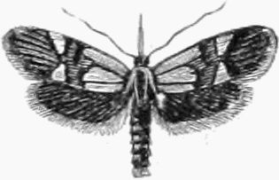 The family Nepticulidæ—the last of the Tineæ—contains a number of little moths, including the smallest of the Lepidoptera. Many of them are exceedingly beautiful, being decorated with[Pg 307] various tints of a splendid metallic lustre, but their beauty is revealed only by the use of a magnifying lens, and they are so small that very great care and patience is required to set them properly.
