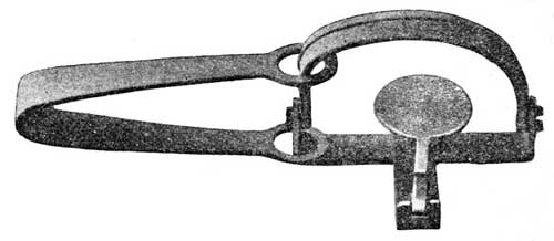 In this trap the method of attaching the pan was changed and the jaws were rendered more durable, but as the holding edges were made much thinner they were more liable to cut the animal's legs and on the whole the trap was not improved.