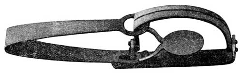 The "bows" or holes in the spring must be of a proportion to properly fit the jaws and have such a "twist" as will allow them to lie flat when set, and the temper must be so moderated as not to be brittle or "high", otherwise they may break if sprung without anything between the jaws. For it is well known that it is a much harder strain on any trap to be sprung thus than to snap on to the leg of an animal.
