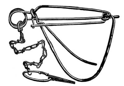 This trap is used for taking beaver and also to some extent for small wolves and coyotes.