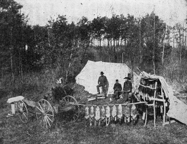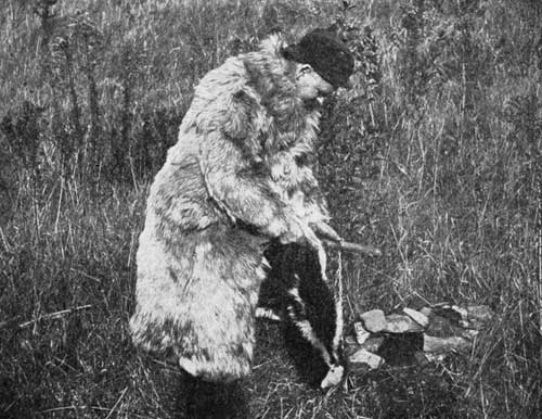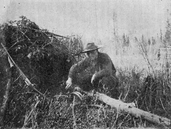 For stopping camps along the trap lines, the Indian tepee or wigwam is as good as any. They may be made of birch bark or tar paper and if they are covered thickly with boughs and banked with snow it will only require a small fire to keep them warm. If you are fortunate enough to possess a rabbit skin blanket such as are made by the Chippewa Indians you will not need to keep a fire at night.