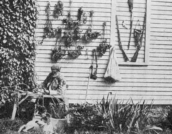 The way the Indians tan skins in the woods is to take the brains of the animal and rub the flesh side of the skin with them until it is rubbed in good; they then let them dry, working and pulling them until thoroughly dry. To tan mole, squirrel and such skins, draw the skin over a corn cob or board and place it in the sun, then apply sweet oil every 24 hours. After doing this about five times rub over with fine alum.
