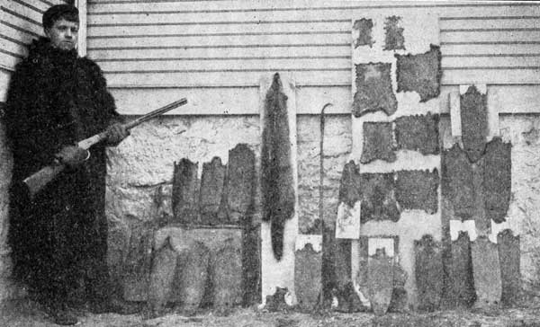 Of late years they have become cheaper, owing to the increased facilities of those great trap manufacturers, the Oneida Community, who are always looking to trappers' interest by adding new and improved methods of manufacture as well as new traps to the extensive line already manufactured so that now their use has become general; in fact, the price is now so reasonable that the trapper, on his first expedition, can have a full supply. The professional trapper, who in the North, spends from seven to nine months in the woods has a supply of these traps, ranging from the smallest to the largest. His needs are such too that all of them are in use during the trapping season. A trapper can use from 50 to 250 traps.