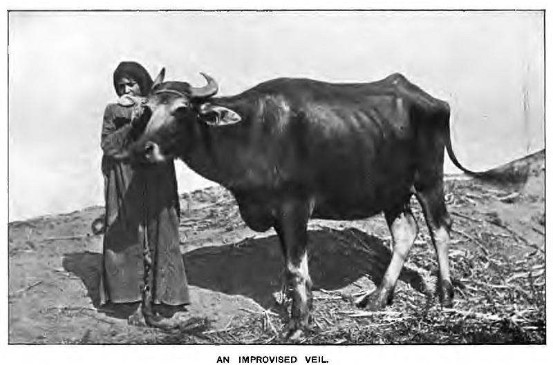 The illustrations of the fellaheen farm labourers and their wives are typical of the class of people with whom he would have to deal, and if the new adventurer objected to the class of hut they occupy, and had lofty ideas about model dwellings and the introduction of lighter implements in place of the clumsy, adze-like hoes with which they are armed rather than furnished, the advice given to him would be to follow that of the old Latin proverb, “Festina lente,” and go by degrees in that, as in most of the other matters of culture, for it takes time to alter custom and change old-fashioned routine.