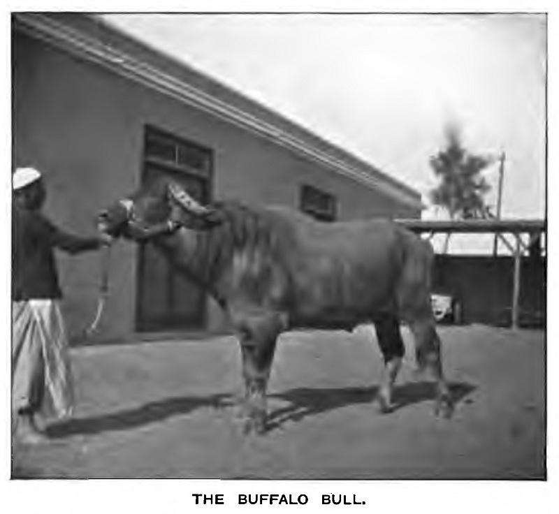 Attached to the building above referred to were well-erected ranges of cattle-sheds, not occupied for fattening purposes, but for the culture of the farm, this culture being carried on not by horses, but by oxen—buffaloes and ordinary bullocks—which are regularly used, as at one time in Old England, yoked to the plough, harrow, or roller, and on some of the high grounds which are let by his Highness, for turning the water-wheels, though on the model farms steam power only is used for the purposes of irrigation.