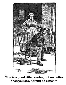 What a good contented creeter Sarah Abraham wuz. How settled down, and stiddy, stayin’ right to home for hundreds of years. Not gettin’ rampent for a wider spear, not a coaxin’ old Mr. Abraham nights to take her to summer resorts, and winter hants of fashion.