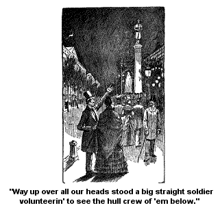 Bial Flamburg hadn’t lied a word to her. In all her agony she realized that. But she had built a high towerin’ structure of ambition on what he said, and it had tottered. And as is natural in times of danger, the heart turns instinctively to its true love, she thought of Abram Gee, she wanted him. And as if in answer to her deep and lovin’ thought, who should come out to the buggy to help her out at Mr. Pixleyses gate, but Abram Gee? He had come unexpected, and on the eight o’clock train, and wuz there waitin’ for her.