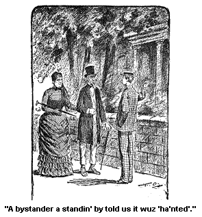 Aunt Polly Pixley wuz the only one who received the intelligence gladly. And she thought she would go too. She had been kinder run down and most bed rid for years. And she had a idee the water might help her. And I encouraged Aunt Polly in the idee, for she wuz well off. Yes, Mr. and Miss Pixley wuz very well off though they lived in a little mite of a dark, low, lonesome house, with some tall Pollard willows in front of the door in a row, and jest acrost the road from a grave-yard.