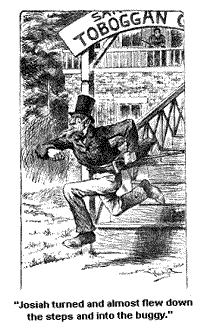 The hired girl told me (Miss Flamm never mentioned it to me), and she wuz glad enough of it, that the dog wuz dead. It died the day the little girl wuz hurt. The hired girl said the doctor had told Miss Flamm, that it couldn’t live long. But it wuzn’t till we wuz on our way home that I found out one of the last eppisodes in that dog’s life. You see, sick as that dog wuz, it wuz bound to bark at my pardner as long as it had a breath left in its body. And Josiah told me in confidence (and it must be kep’, it is right that it should be); he said jest after he had knelt down and began to pray he felt that dog climb up onto his heels, and pull at his coat tails, and growl a low mad growl, and naw at ’em.