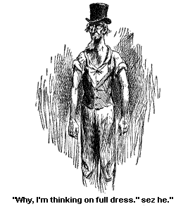 And he sez firmly, “If I wuz a great-grandfather I would trim my whiskers in jest this way, that is if I wuz a goin’ to set up to be fashionable and a goin’ to Saratoga for my health.”