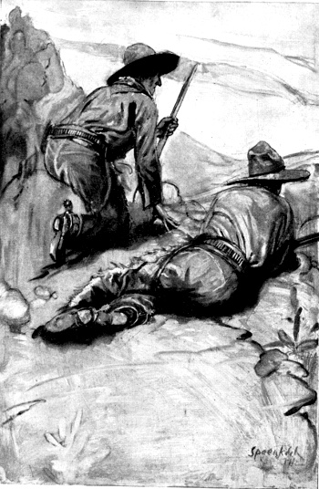 The boss despatched his son to Badger to fetch Dr. Armstrong and himself set to work to ease the cowman's pain. The wound in his neck gave Lafe no concern, but that in the stomach caused Horne acute agony and Lafe feared internal hemorrhages.