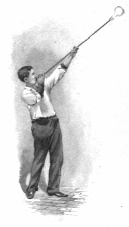All people like machinery in motion, and the most curious people on earth are Americans. They want to know how things are made, and, like children, are not content until they have laid their hands on whatever confronts them. "Please do not touch" has no terrors for them. In addition to this inborn love of action, there is a fascination[Pg 26] about glass blowing and the fashioning of shapeless matter piping hot from the pot that appeals to men and women of all sorts and conditions. With eyes and mouths wide open, thousands stood daily around the circular factory watching a hundred skilled artisans at work. They looked at the big central furnace, in which sand, oxide of lead, potash, saltpetre and nitrate of soda underwent vitrification; they saw it taken out of the pot a plastic mass, which, through long, hollow iron tubes, was blown and rolled and twisted and turned into things of beauty. Here was a champagne glass, there was a flower bowl; now came a decanter, followed by a jewel basket. A few minutes later jugs and goblets and vases galore passed from the nimble fingers of the artisans to the annealing oven below.