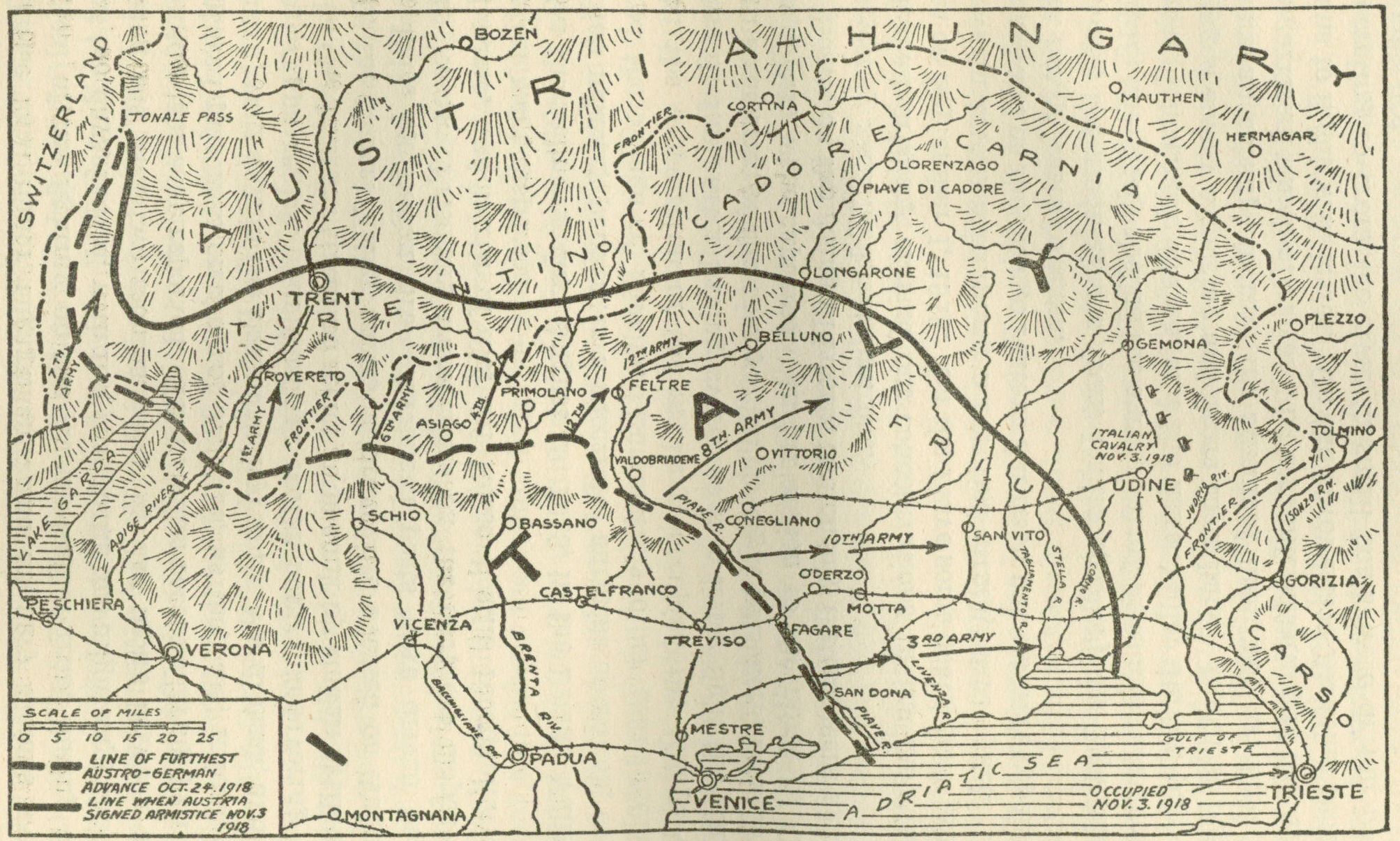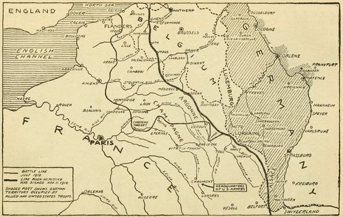 While the French and British were engaged in smashing the German forces in the west, the American and the French (as described elsewhere in these pages) were keeping up an irresistible pressure along the Vesle River.